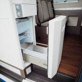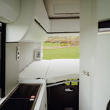 - Double latitudinal bed with an additional children’s double bunk bed above the front cab.